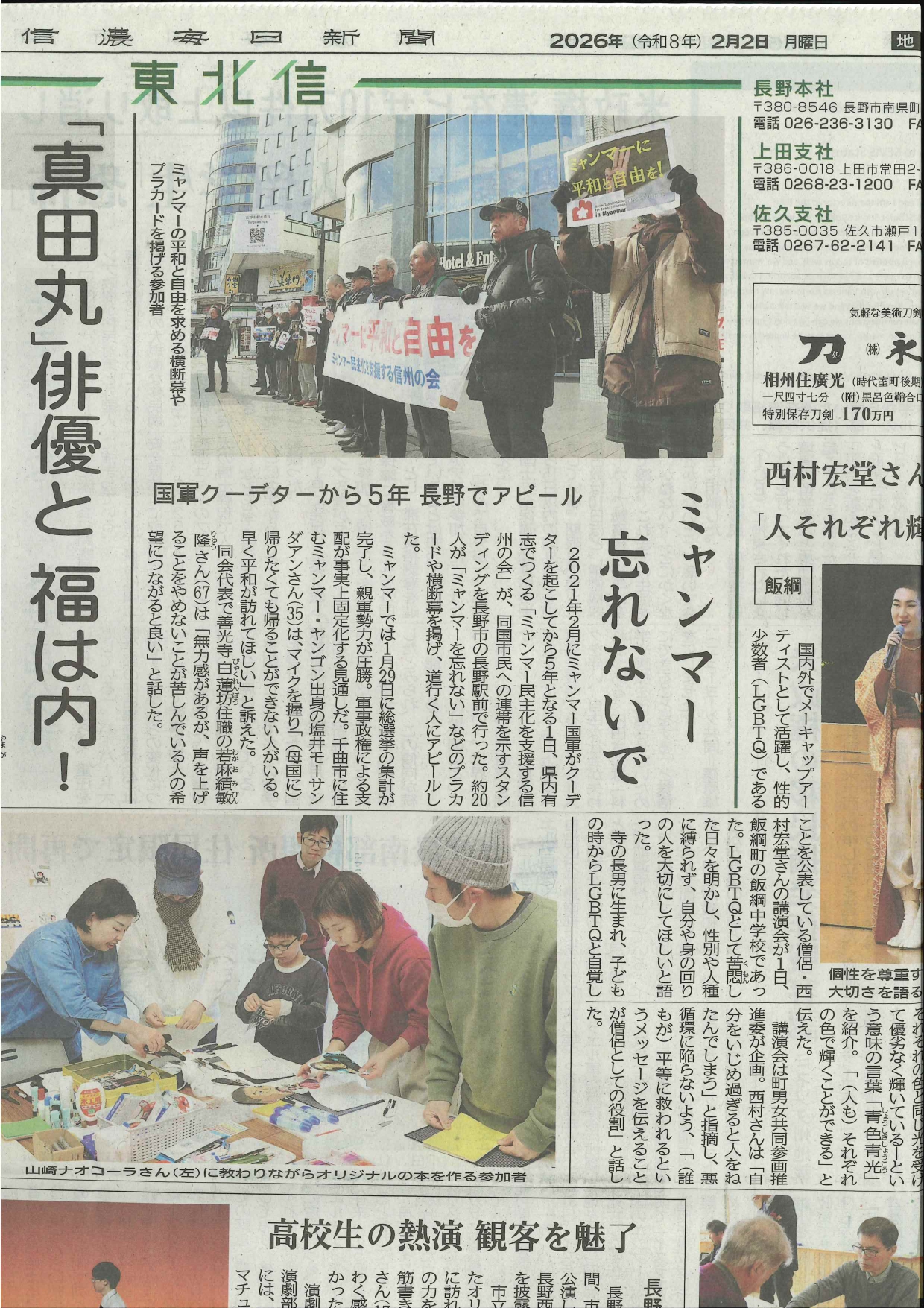 (1)高市首相の衆議院解散、総選挙の判断は、国民生活を顧みず、全くの党利党略、私利私欲で大義なき解散である。しかし、総選挙は強行されるので、右翼的、国家主義的、独善的な高市政権の暴走を止め、自民・維新政権を少数与党に追い込んで、高市政権の退陣を勝ち取る必要がある。「反高市」の一点で野党がまとまり、選挙を戦うことが求められている。