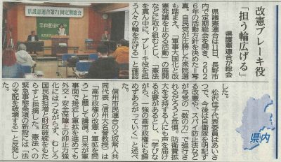 県護憲連合定期総会で改めて平和憲法を堅持する意思を確認