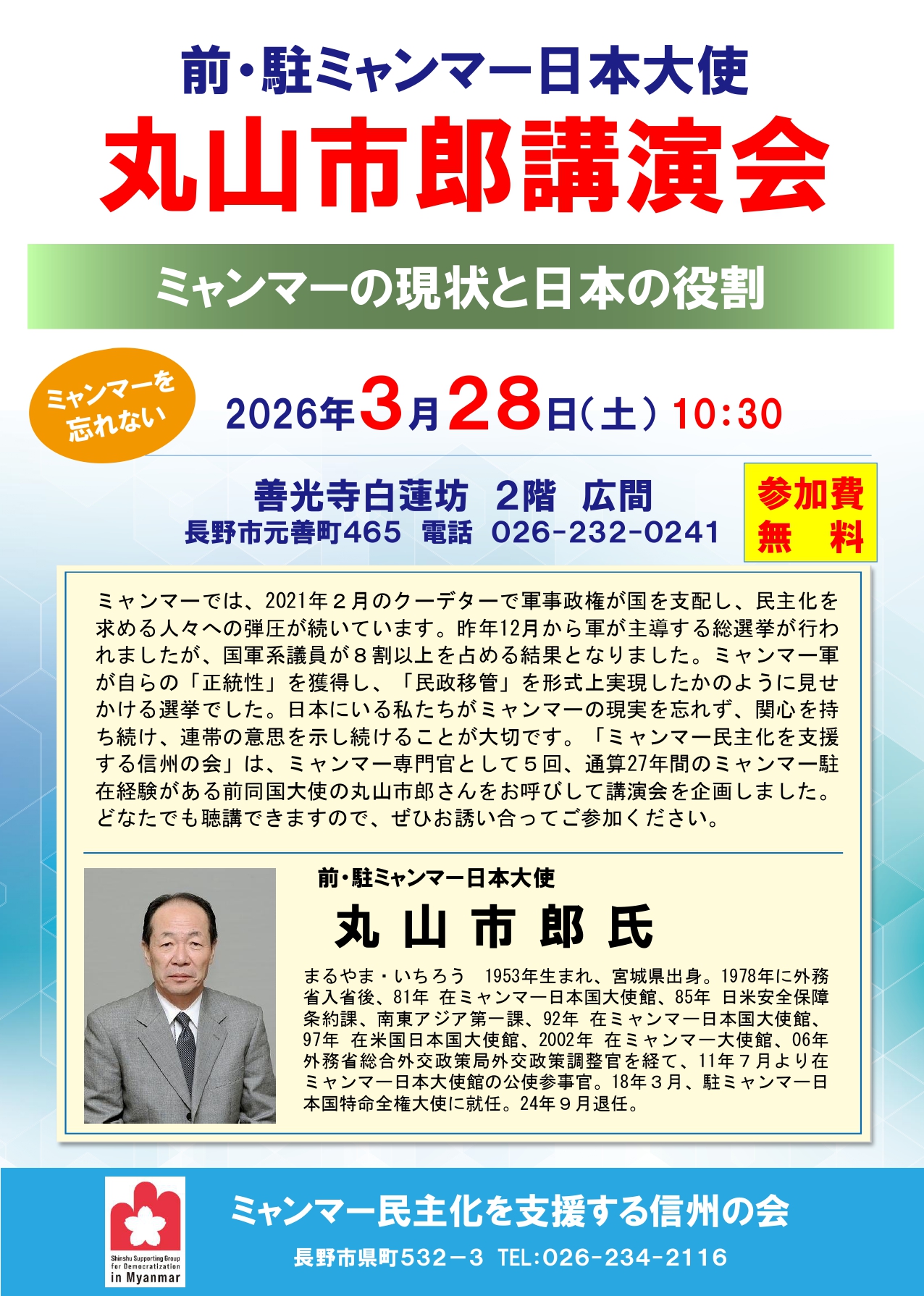 記念講演の講師は、信州大学名誉教授で信州市民連合共同代表の又坂常人氏。「高市政権の改憲・軍拡を問う」をテーマに講演。又坂氏は、まず総選挙の結果について分析。戦後初めて 自民党が単独で3分の2を超える議席を確保したことにより、法律案の再議決だけでなく、改憲発議も可能となる危険な政治状況となると危機感をあらわにしました。また、新党「中道改革連合」が惨敗した原因にも言及、「政策の中途半端さで 自民との対立軸を鮮明化にできなかった」「『高市劇場』により人気投票に矮小化された」「 安保法制や原発で政策を妥協した結果、従来の立憲民主党支持者の離反を招いた」などと分析しました。